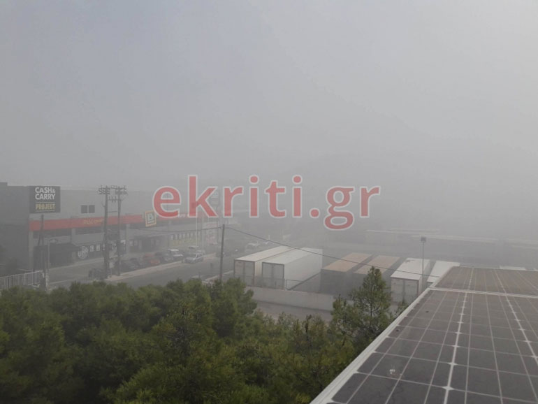 Αποπνικτική ατμόσφαιρα στο Ηράκλειο Κρήτης, καθώς υδρατμοί έχουν σκεπάσει την πόλη. Στο τηλεφωνικό κέντρο της Πυροσβεστικής Υπηρεσίας επικρατεί πανικός από τηλεφωνήματα πολιτών που ανησυχούν για το φαινόμενο.