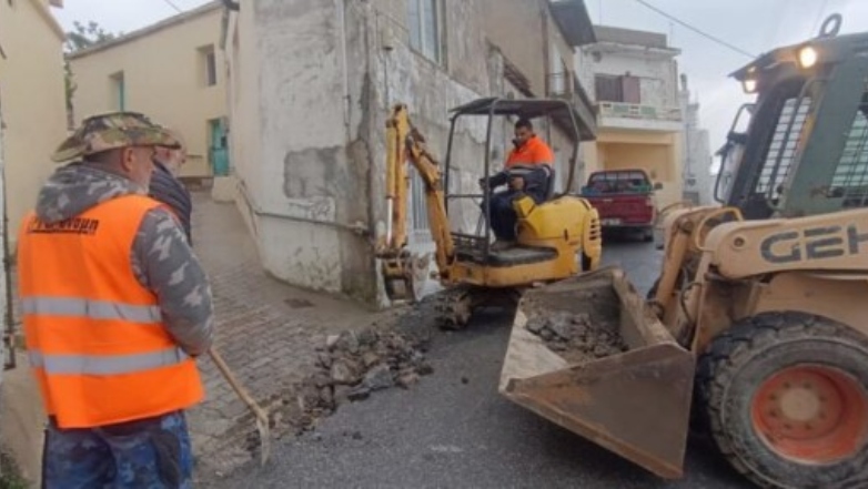 Από νωρίς το πρωί, συνεργεία του δήμου τοποθετούν προσωρινό εξωτερικό δίκτυο για την υδροδότηση των σπιτιών της περιοχής.