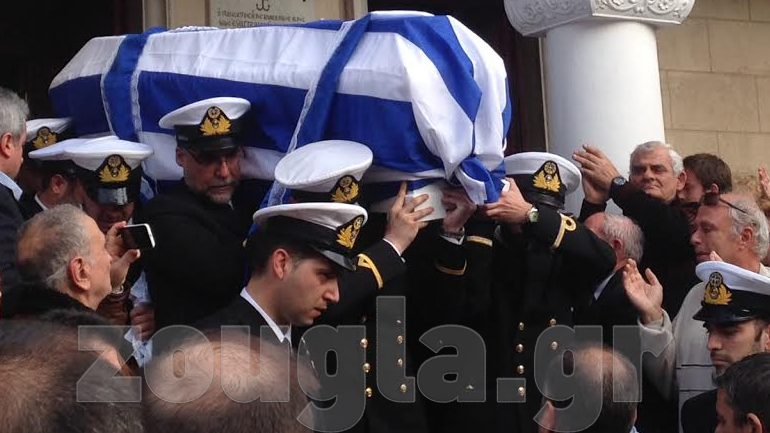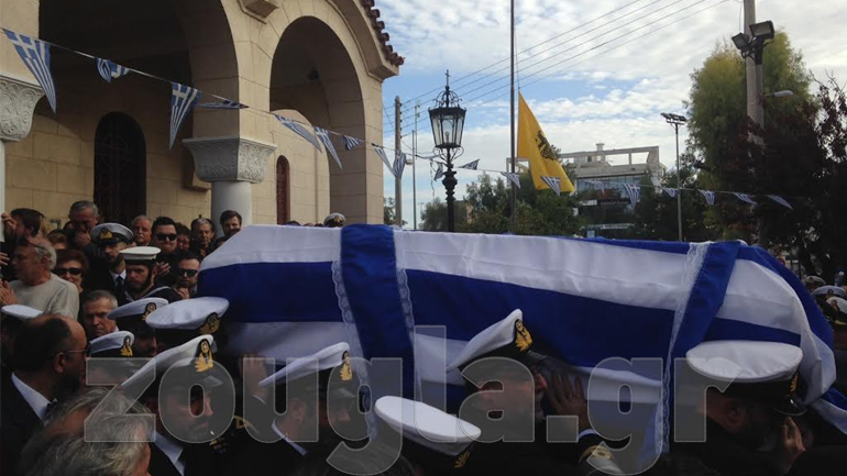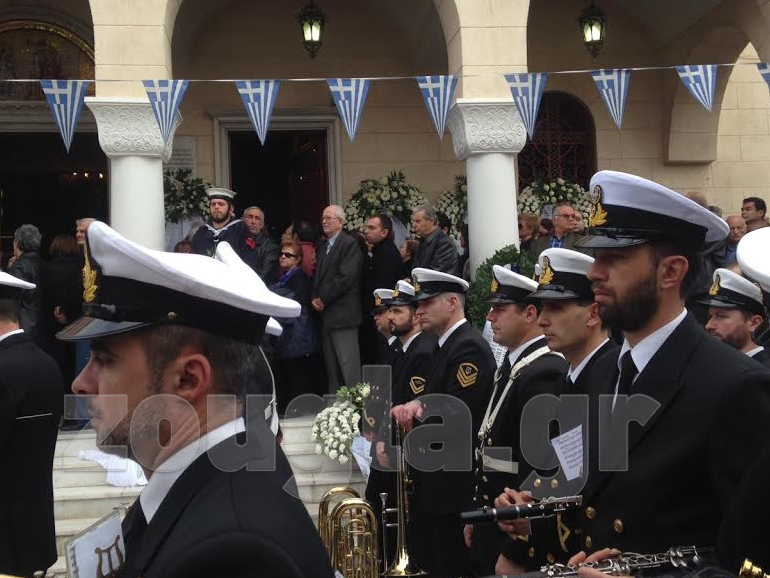 Σε κλίμα οδύνης, συγγενείς και φίλοι αποχαιρετούν τον Ελευθέριο Ευαγγέλου, τον ανθυπασπιστή που σκοτώθηκε κατά τη συντριβή ελικοπτέρου του Πολεμικού Ναυτικού.
