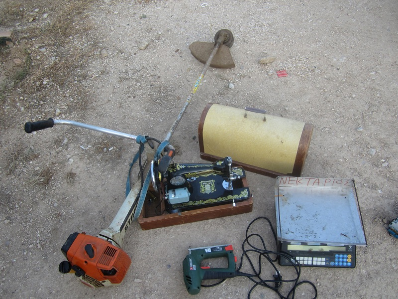 • πλήθος ηλεκτρικών συσκευών, γεωργικών μηχανημάτων, καθώς και διάφορα αντικείμενα και εργαλεία