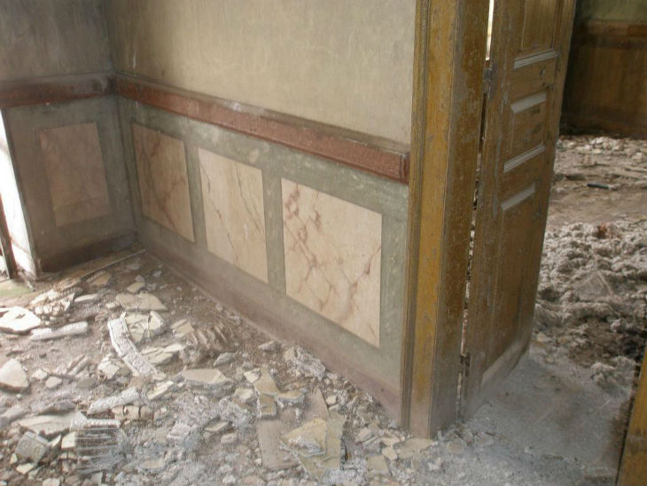 Ήδη έχει υποχωρήσει η στέγη του σε κάποια σημεία και τα νερά της βροχής πέρασαν μέσα, με αποτέλεσμα να ξεκολλάνε τα ταβάνια από το «μπαγδατί» των ψευδοροφών.