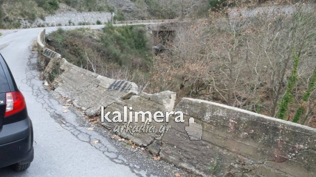 Έτοιμο να καταρρεύσει είναι το γεφύρι στην είσοδο των Λαγκαδίων, στη Γορτυνία.