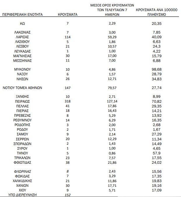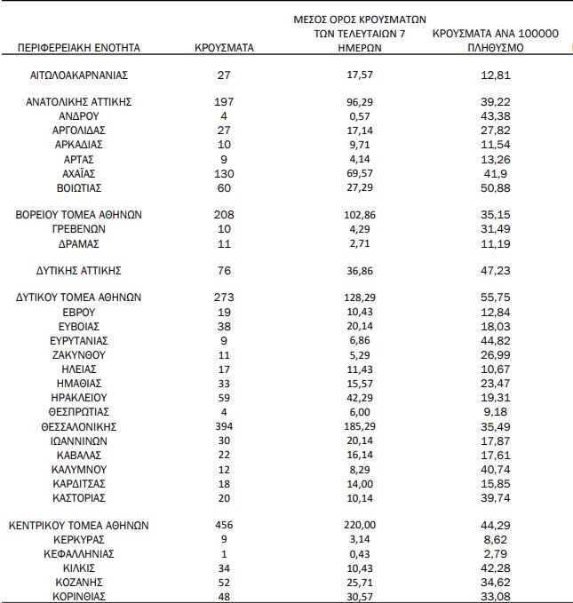 Αναλυτικότερα τα κρούσματα στις περιφερειακές ενότητες που ανήκουν στην Αττική: