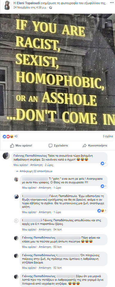 Στόχος επίθεσης από ακροδεξιούς χρήστες του διαδικτύου με φασίζουσες ιδεολογίες έγινε το προφίλ που διατηρούσε στο Facebook η 21χρονη φοιτήτρια που βρέθηκε δολοφονημένη στη Ρόδο.