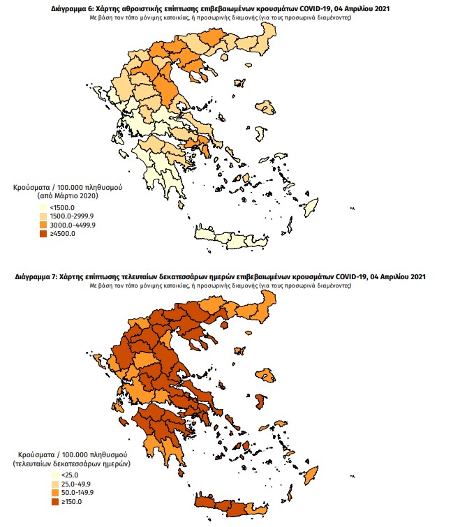 «Τα νέα εργαστηριακά επιβεβαιωμένα κρούσματα της νόσου που καταγράφηκαν τις τελευταίες 24 ώρες είναι 1.955, εκ των οποίων 6 εντοπίστηκαν κατόπιν ελέγχων στις πύλες εισόδου της χώρας. Ο συνολικός αριθμός των κρουσμάτων ανέρχεται σε 275.414 (ημερήσια μεταβολή +0.7%), εκ των οποίων 51.4% άνδρες. Με βάση τα επιβεβαιωμένα κρούσματα των τελευταίων 7 ημερών, 77 θεωρούνται σχετιζόμενα με ταξίδι από το εξωτερικό και 3.313 είναι σχετιζόμενα με ήδη γνωστό κρούσμα.