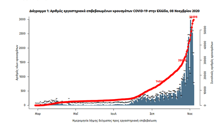 Σημ.: οι στήλες στο Διάγραμμα 1 εκφράζουν τον αριθμό νέων κρουσμάτων με βάση την ημερομηνία λήψης εργαστηριακού δείγματος, και όχι με βάση την ημερομηνία ανακοίνωσης των κρουσμάτων.