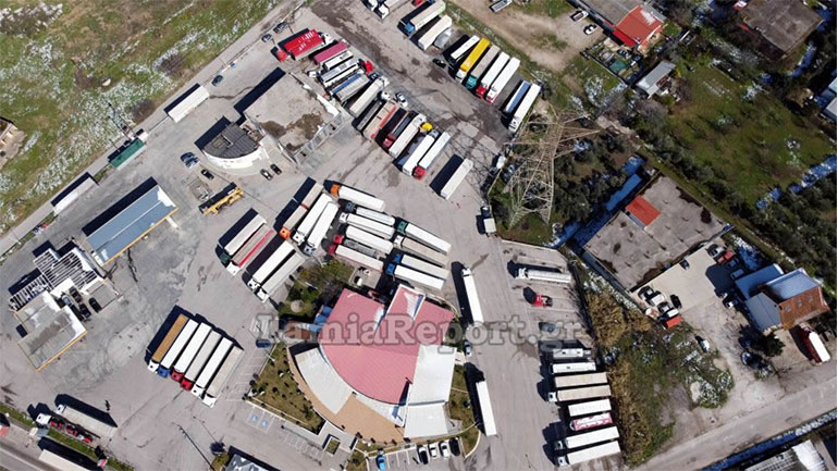 Σε απέραντο «πάρκινγκ» φορτηγών έχει μετατραπεί η ευρύτερη περιοχή της Λαμίας λόγω του απαγορευτικού κυκλοφορίας, με εκατοντάδες οχήματα να έχουν ακινητοποιηθεί σε διάφορα σημεία κοντά στην εθνική οδό. Τα περισσότερα από αυτά έχουν σταθμεύσει σε καταστήματα εστίασης και πρατήρια που είναι δίπλα στον ΠΑΘΕ.