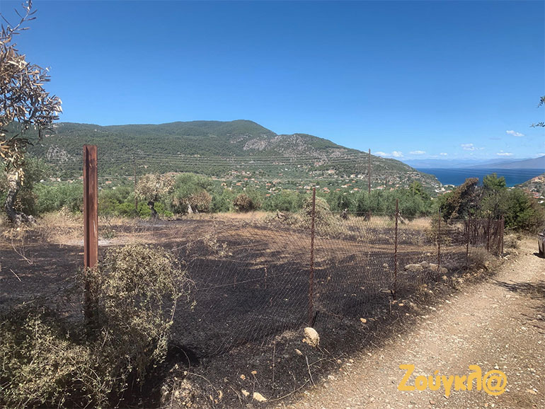Φωτογραφίες από το οικόπεδο όπου ξεκίνησε η πυρκαγιά στην Κορινθία, η οποία έχει ήδη κατακάψει περισσότερα από 40.000 στρέμματα δάσους, παρουσιάζει το zougla.gr.