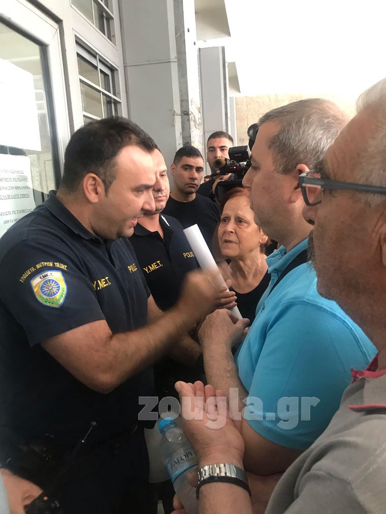 Έξω από τα δικαστήρια υπήρξε ένταση, όταν άτομα από το συγκεντρωμένο πλήθος θέλησαν να εισέλθουν στον χώρο.