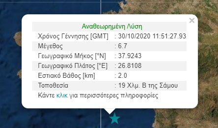 »Μέχρι στιγμής έχουν αναφερθεί ζημιές σε κτήρια στη νήσο Σάμο, αλλά η Πυροσβεστική Υπηρεσία δεν έχει λάβει καμία κλήση για απεγκλωβισμό. Έχει αποσταλθεί μήνυμα προς τους κατοίκους της ευρύτερης περιοχής που σημειώθηκε η σεισμική δόνηση μέσω του 112 και οι Αστυνομικές δυνάμεις απομακρύνουν τους κατοίκους από τις ακτές.