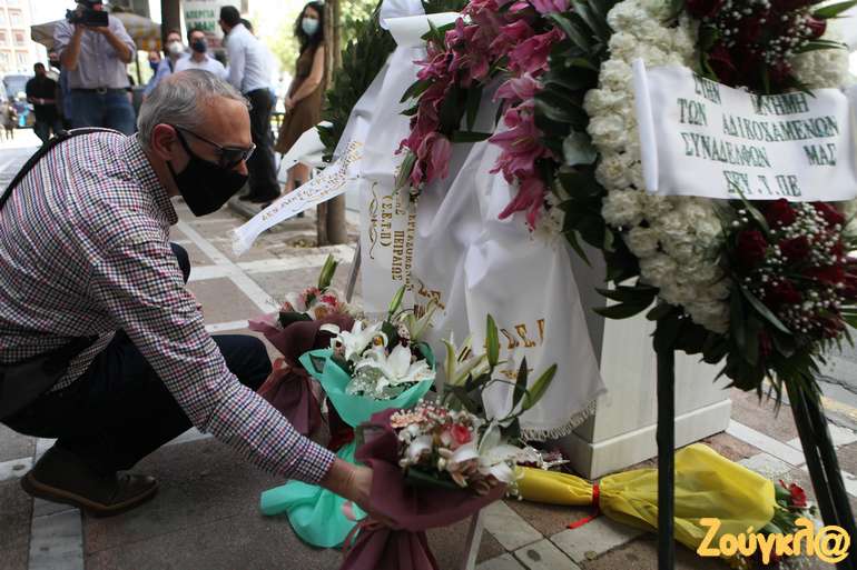 Σήμερα άνθρωποι έχουν συγκεντρωθεί στο μνημείο της Marfin για να τιμήσουν εκείνους που έχασαν τη ζωή τους εκείνη τη μέρα.