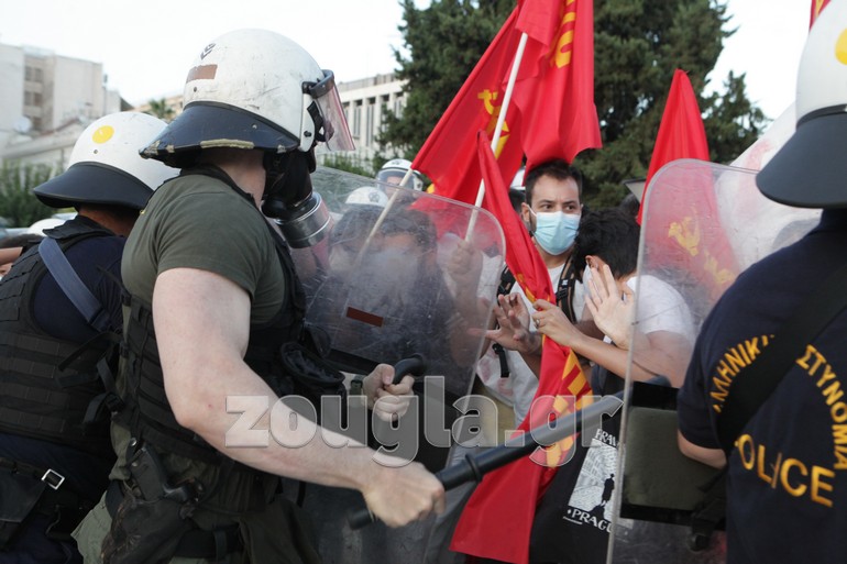 Επεισόδια σημειώθηκαν στο κέντρο της Αθήνας, κοντά στο μνημείο του Αγνώστου Στρατιώτη, ανάμεσα σε δυνάμεις των ΜΑΤ και σε ομάδες διαδηλωτών.