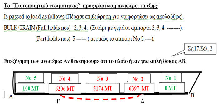 Αμέσως πιο κάτω το επικίνδυνο σχέδιο φόρτωσης του Αρχιπλοιάρχου Γρίβα στα (3) μεσαία Αμπάρια (2,3,4) πλήρη και μερικώς το αμπάρι (5).(Σχ.17. Σελ. 2)