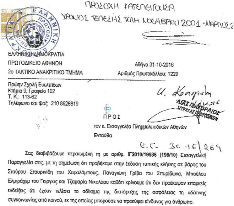 Αμέσως πιο κάτω, παραθέτω το έγγραφο της Εισαγγελίας Πρωτοδικών Αθήνας