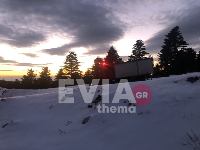 Ενώ Το πυροσβεστικό όχημα δεν μπορούσε να ανέβει την διαδρομή λόγω του πάγου, οι εθελοντές αποφάσισαν να κάνουν την διάσωση με τα πόδια.