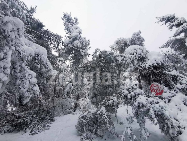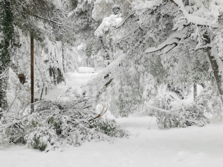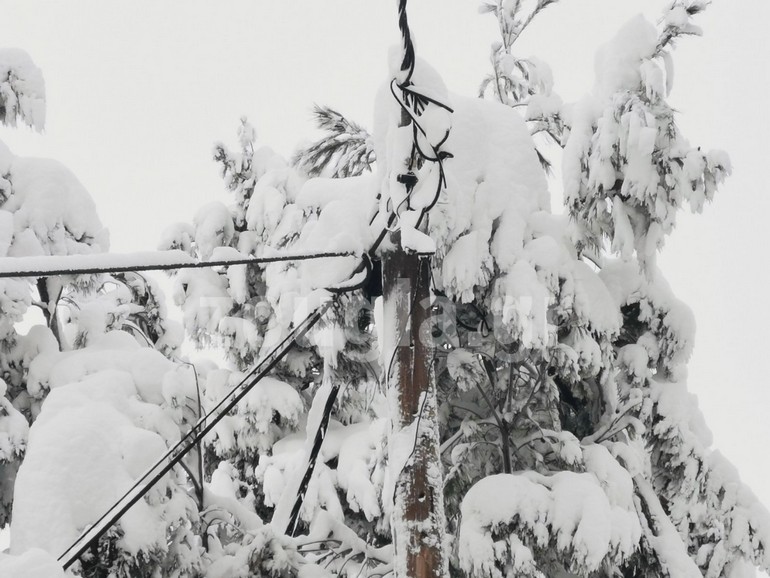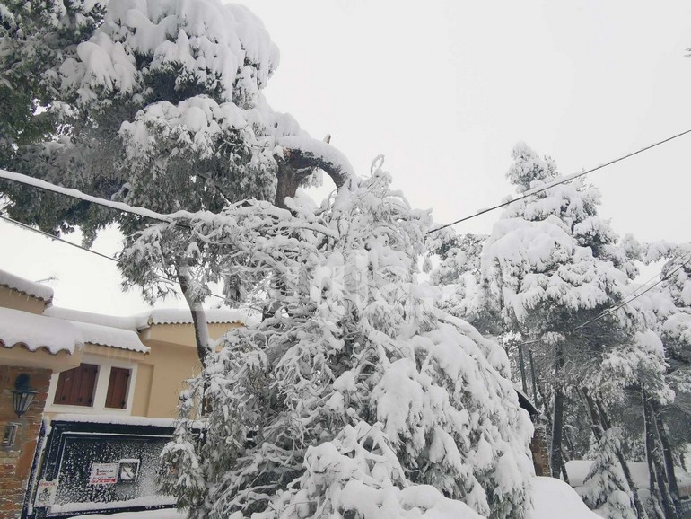 Ολοένα και πολλαπλασιάζονται τα περιστατικά με πτώσεις δέντρων πάνω σε σύρματα της ΔΕΗ, σε περιοχές με σφοδρή χιονόπτωση όπως στη βόρεια Αττική.