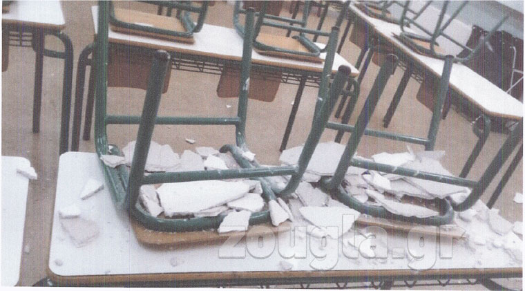 Είμαι από τον σύλλογο γονέων και κηδεμόνων του 26ου & 29ου Δημοτικού Σχολείου Αχαρνών. Στις 10/1 είχαμε πτώση σοβάδων στο 26ο και στο 29ο Δημοτικό Σχολείο Αχαρνών και μόνο από θαύμα δεν θρηνήσαμε παιδιά. Απευθυνθήκαμε στον Δήμο Αχαρνών και μας έδιωξε λέγοντας ότι είναι αρμοδιότητα της ΚΤΥΠ. Απευθυνθήκαμε στην ΚΤΥΠ, μας ξαναέστειλε στον Δήμο, αλλά μας έστειλε κλιμάκιο να ελέγξει. Το κλιμάκιο διαπίστωσε σάπια στέγη, ταβάνια να στάζουν και σε επτά σχολικές αίθουσες ετοιμόρροπους σοβάδες έτοιμους να πέσουν στα κεφάλια των μαθητών.