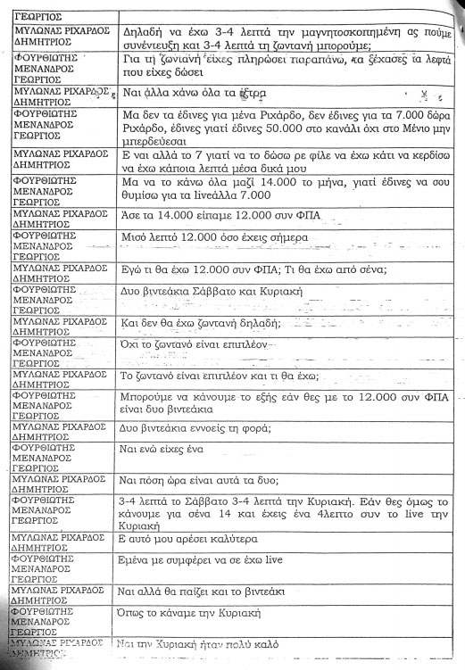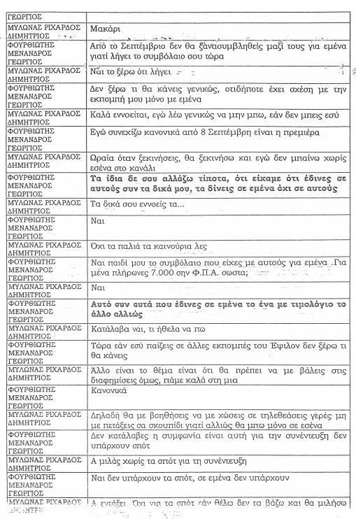 Πέραν τούτου, από τις συνομιλίες προκύπτει πως ο τηλεπαρουσιαστής έκλεινε συμφωνίες μόνο για τον εαυτό του «ρίχνοντας» τον τηλεοπτικό σταθμό που τον φιλοξενούσε.