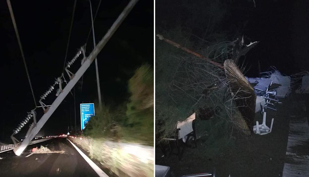 Λόγω των έντονων καιρικών φαινόμενων αρκετές περιοχές της Χαλκιδικής βυθίστηκαν στο σκοτάδι, ενώ προβλήματα υπάρχουν και στο οδικό δίκτυο από πτώσεις δένδρων και φερτών υλικών.