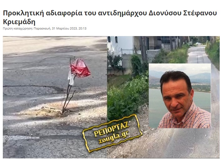 Γιατί αφού αναδείξαμε το πρόβλημα αδιαφορούν και δεν το αποκαθιστούν ; Μήπως δεν συμφέρει κανέναν να ασχοληθεί με το θέμα εκεί στον Δήμο διότι όλοι είναι μπλεγμένοι… από τον εργολάβο του έργου μέχρι και τους υπαλλήλους ;