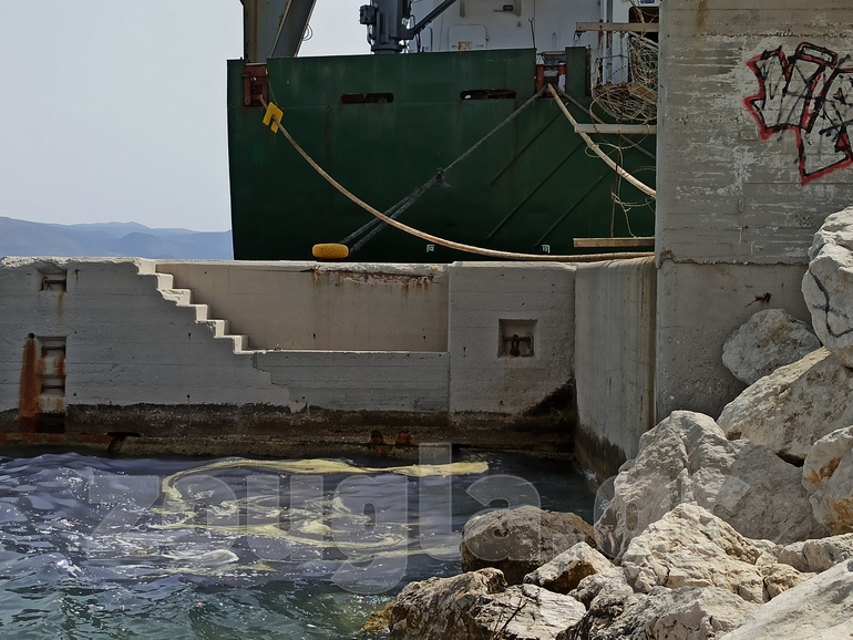 Τότε, οι εργαζόμενοι της εταιρείας, δεδομένου ότι ο λιμενοβραχίονας που εκτελούνται οι εργασίες είναι τσιμεντένιος και άρα πάντα μένουν υπολείμματα μετά την φόρτωση των χύμα φορτίων που εναποθέτονται εκεί στα φορτηγά που χρησιμοποιούνται για την μεταφορά τους, με την χρήση μάνικας, «ξεπλένουν» την επιφάνεια του λιμενοβραχίονα ρίχνοντας τα όποια υπολείμματα υλικών στην θάλασσα.