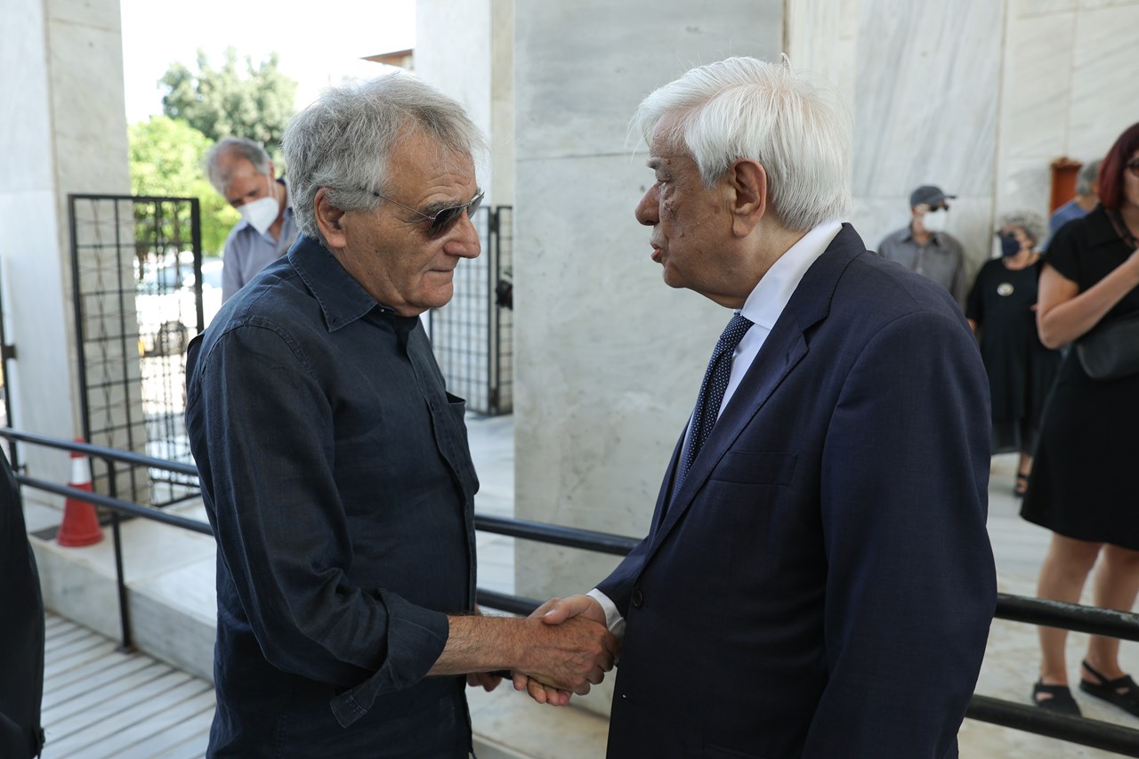 Τους επικήδειους εκφώνησαν ο αρχηγός της αξιωματικής αντιπολίτευσης Αλέξης Τσίπρας, ο υφυπουργός Ψηφιακής Διακυβέρνησης (και παλαιός συνεργάτης του) Θοδωρής Λιβάνιος, ο κοινωνιολόγος και πανεπιστημιακός Κωνσταντίνος Τσουκαλάς, ο ομότιμος καθηγητής Ψυχιατρικής, Δημήτρης Πλουμπίδης, ο διευθυντής των Αρχείων Σύγχρονης Κοινωνικής Ιστορίας, Κώστας Καρπόζηλος και ο διδάκτωρ Πολιτικής Επιστήμης, Παναγιώτης Κουστένης.