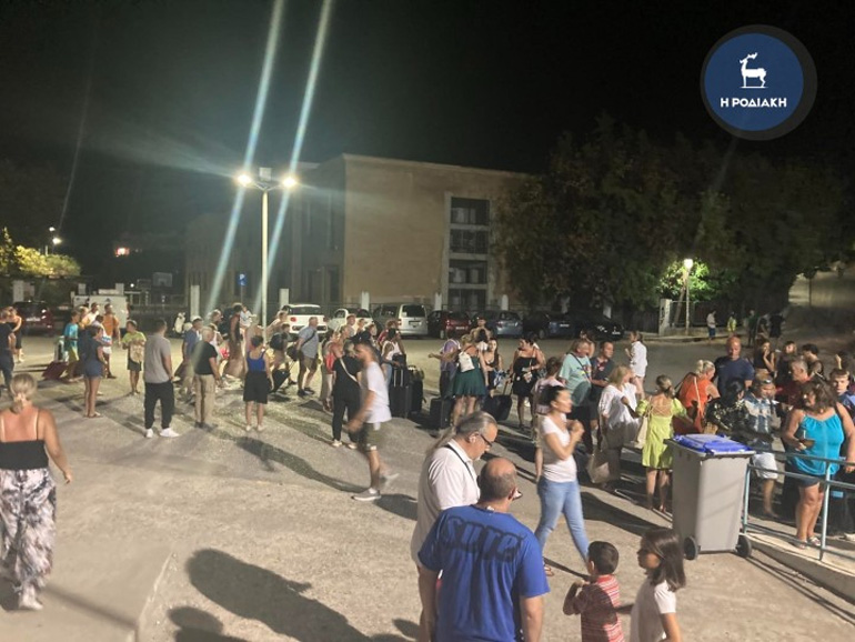 Όλα τα ξενοδοχεία εκκενώθηκαν έγκαιρα από τους τουρίστες που διέμεναν σε αυτά οι οποίοι μεταφέρθηκαν με 30 τουριστικά λεωφορεία και λεωφορεία της ΔΕΣ ΡΟΔΑ σε ασφαλή περιοχή του νησιού.  Επίσης, είχαν διατεθεί 3 λεωφορεία του στρατού ξηράς και ένα λεωφορείο της Πολεμικής Αεροπορίας για την εκκένωση πολιτών.