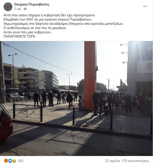 Τον ακρωτηριασμό ενός εποχικού πυροσβέστη κατά την διάρκεια της βίαιης επέμβασης των ΜΑΤ στην διαμαρτυρία τους, μπροστά από το υπουργείο Κλιματικής Κρίσης και Πολιτικής Προστασίας, καταγγέλλουν με ανάρτησή τους στη σελίδα «Εποχικοί Πυροσβέστες» συνάδελφοί του.