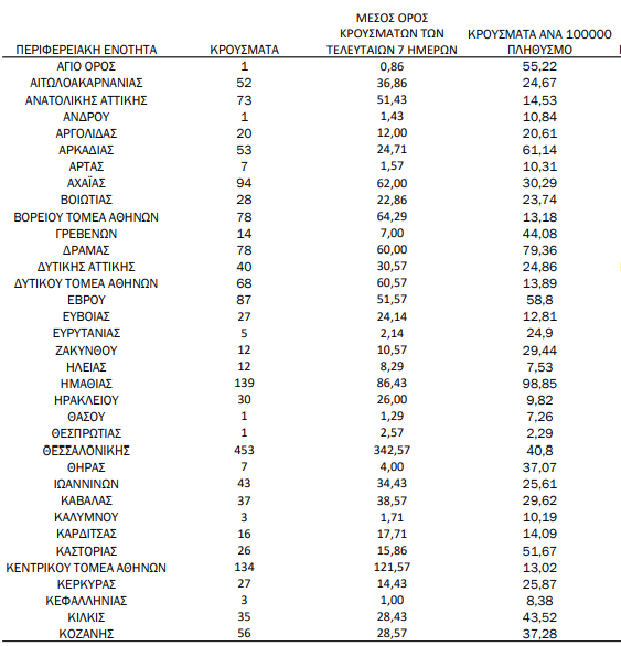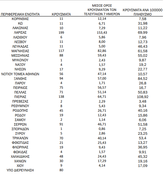 Υπενθυμίζεται πως τα περισσότερα σε αριθμό περιστατικά που έχει καταγράψει ο ΕΟΔΥ σε μία ημέρα ανακοινώθηκαν στις 24 Αυγούστου 2021, όταν εντοπίστηκαν 4.608 περιπτώσεις σε ένα 24ωρο. Επίσης, ο μεγαλύτερος αριθμός θανάτων εξαιτίας του ιού σε ένα 24ωρο καταγράφηκε το Σάββατο 28 Νοεμβρίου, όταν έχασαν τη ζωή τους 121 ασθενείς.