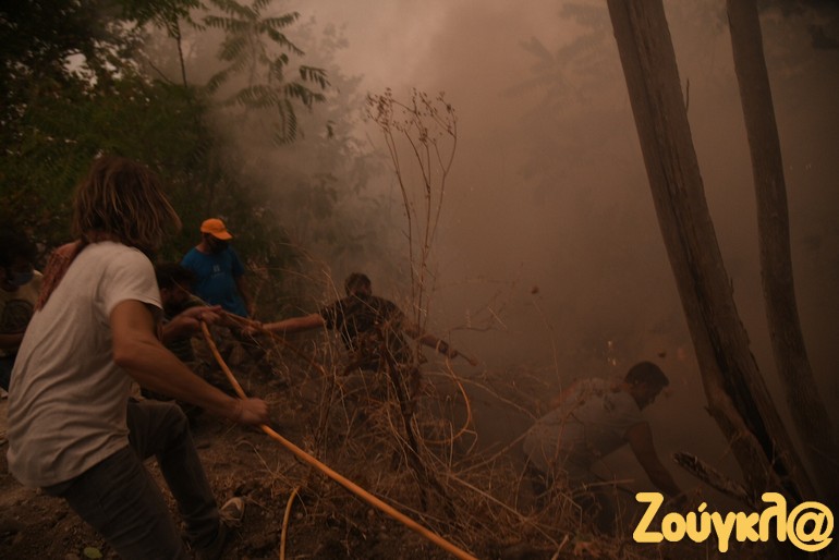 Προς τη θαλάσσια περιοχή στο Πευκί κατευθύνονται οι κάτοικοι από τις περιοχές της Βόρειας Εύβοιας που απειλούνται από τις φωτιές. Ήδη από τις τρεις το μεσημέρι της Κυριακής, οι φλόγες εισέβαλαν στο χωριό Γούβες και κατακαίνε τα πρώτα σπίτια όπως μεταδίδει η “Ζούγκλα”.
