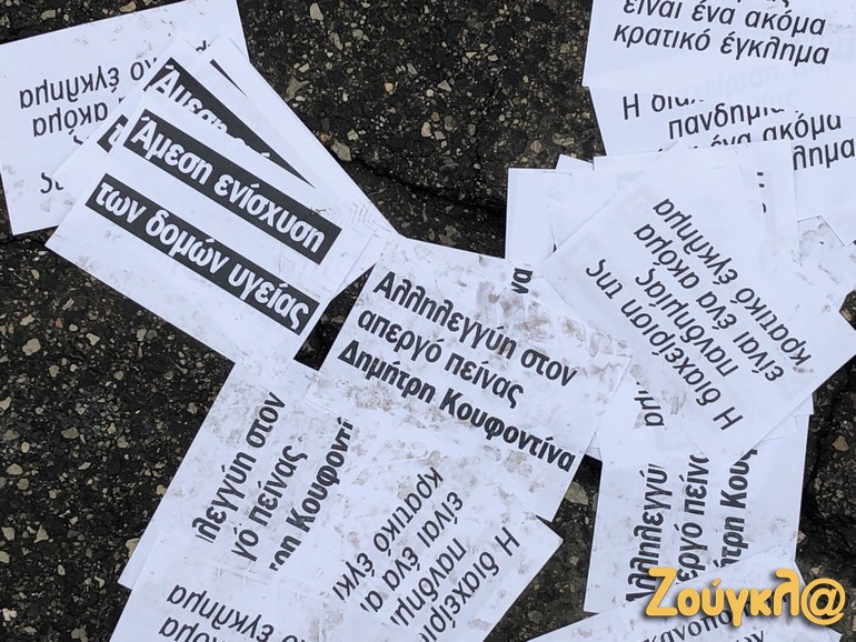 Με τη σημερινή παρέμβαση στο συγκεκριμένο κτίριο επιδιώκουμε αφενός να σπάσουμε τη δολοφονική σιωπή γύρω από την υπόθεση της απεργίας πείνας του πολιτικού κρατούμενου Δ.Κουφοντίνα, να καταγγείλουμε τις αυθαιρεσίες που έχει διαπράξει η κυβέρνηση της ΝΔ, να απαιτήσουμε να ικανοποιηθούν τα παρακάτω αιτήματα.