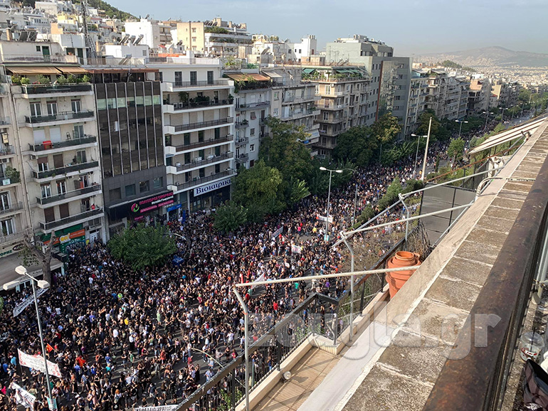 Εν τω μεταξύ, μέλη του αντιεξουσιαστικού χώρου συγκεντρώθηκαν γύρω από τον χώρο αλλά και σε ταράτσες στα προσφυγικά της Λεωφόρου Αλεξάνδρας.