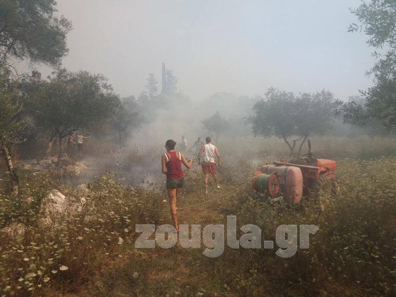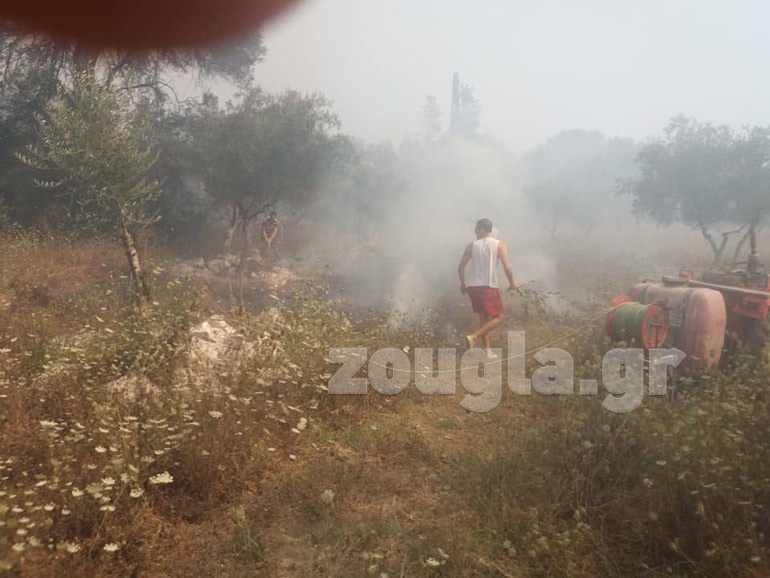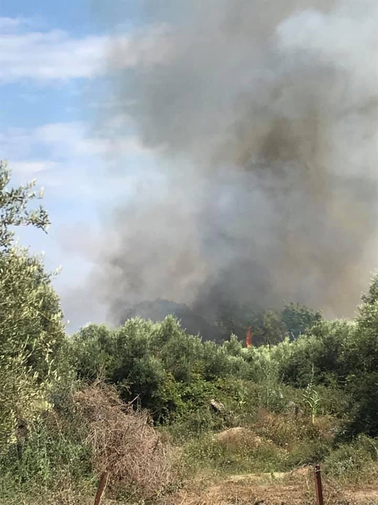 80 στρέμματα έχουν καεί έως τώρα, κυρίως ελιές, καλάμια, χόρτα και θάμνοι.