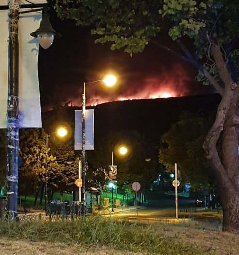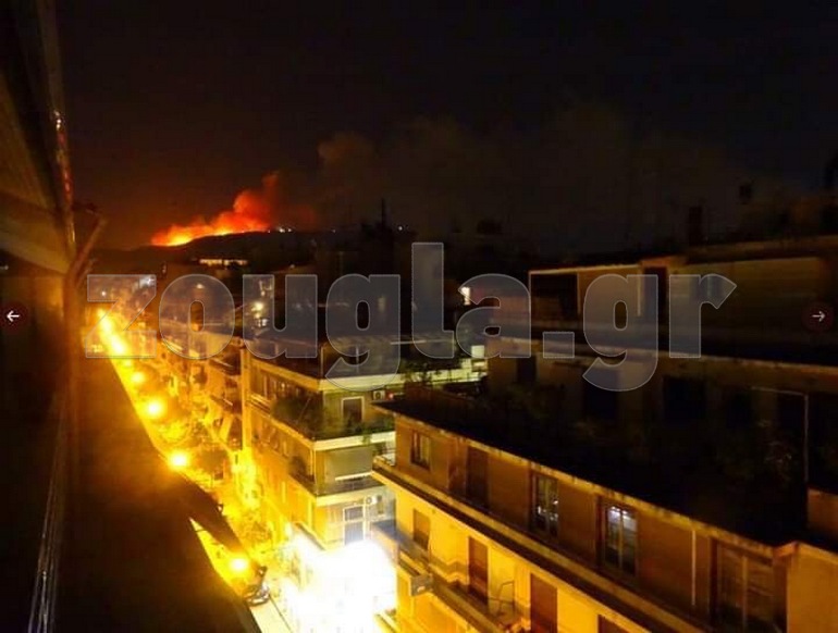 Φωτιά ξέσπασε τα ξημερώματα της Δευτέρας στους πρόποδες του Υμηττού από την πλευρά της Παιανίας και προχώρησε με ταχύτητα προς την κορυφή του βουνού όπου βρίσκονται και οι κεραίες των ραδιοφωνικών σταθμών. Η πυρκαγιά η οποία μετά τις 8.00 παρουσιάζει καλύτερη εικόνα είναι ορατή και από την πλευρά της Αθήνας. Όπως ανέφερε αυτόπτης μάρτυρας – κάτοικος της περιοχής στις 3.18 είδε μία λάμψη, ακούστηκε έκρηξη και τότε ξεκίνησαν όλα.
