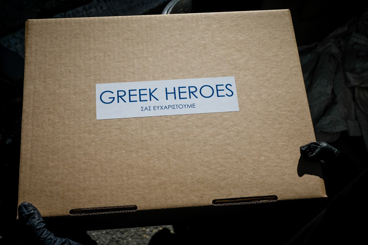 Πάνω στο κουτί που περιέχει τις μάσκες αναγράφεται η φράση «Greek Heroes, σας ευχαριστούμε», που απευθύνεται στο προσωπικό των νοσοκομείων που μάχεται κατά του κορωνοϊού, τους σύγχρονους αυτούς ήρωες της Ελλάδας, όπως αποκαλούνται μέσω του «The Greek Mask Project».