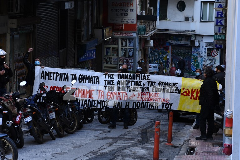 Σε φρούριο έχει πετατραπεί η Αθήνα λόγω της επετείου της δολοφονίας του Αλέξη Γρηγορόπουλου. Το κέντρο είναι απροσπέλαστο από το πρωί. Πριν από λίγο όμως περίπου 10 άτομα του ΚΚΕ(μ – λ) στην οδό Γραβιάς ανήρτησαν πανό.