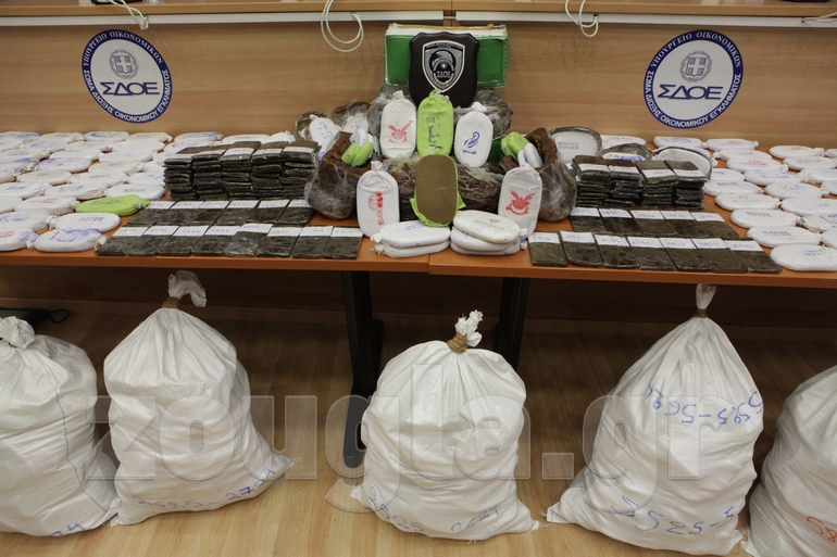 Στελέχη της υπηρεσίας, διεξάγοντας σχετική έρευνα, εντόπισαν σε κοντέινερ στον Πειραιά κάνναβη βάρους ενός τόνου και 250 κιλών. Τα ναρκωτικά ήταν κρυμμένα μέσα σε χουρμάδες.