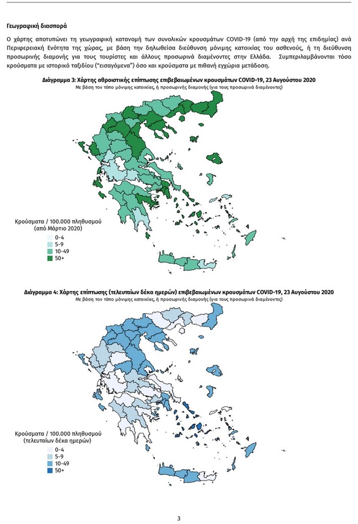 – 141 κρούσματα στην την Π.Ε. Αττικής, εκ των οποίων τα 26 συνδέονται με πρόσφατο ταξίδι στο εσωτερικό της χώρας και 15 συνδέονται με γνωστή συρροή