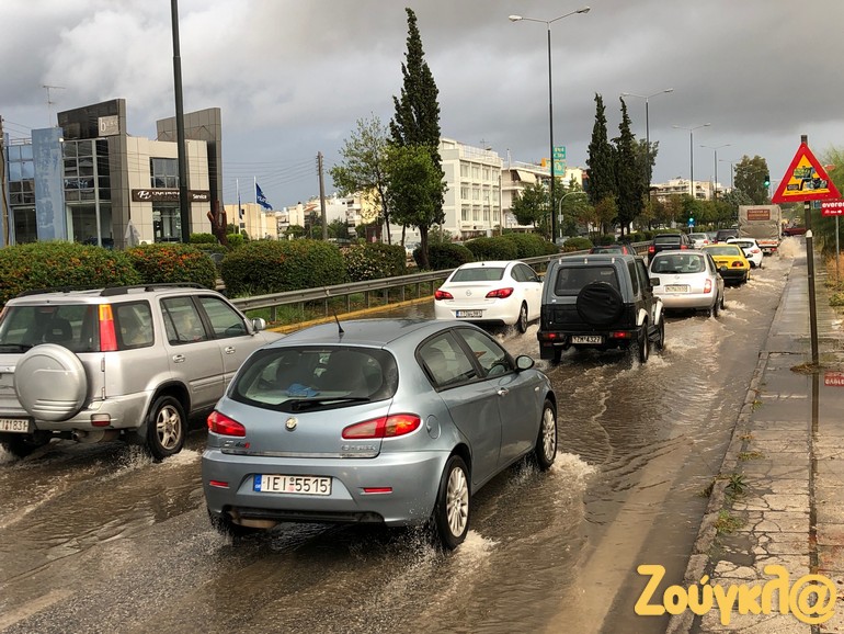 Σε πολλές περιοχές της Αττικής σημειώνονται ισχυρές βροχοπτώσεις που συνοδεύονται από αστραπές και βροντές ενώ έχουν αρχίσει και πλημμυρίζουν δρόμοι.