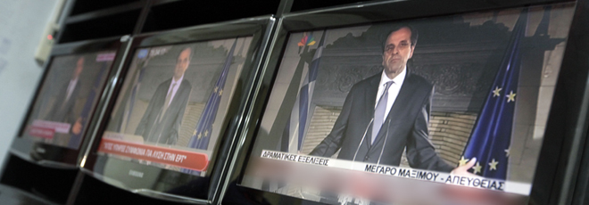 Ο λόγος για τη γκάφα ολκής στην οποία υπέπεσαν τα τηλεοπτικά κανάλια που μετέδωσαν το «λάθος» μαγνητοσκοπημένο μήνυμα του πρωθυπουργού, Αντώνη Σαμαρά, με την προαναγγελία της μείωσης του φόρου στην εστίαση.