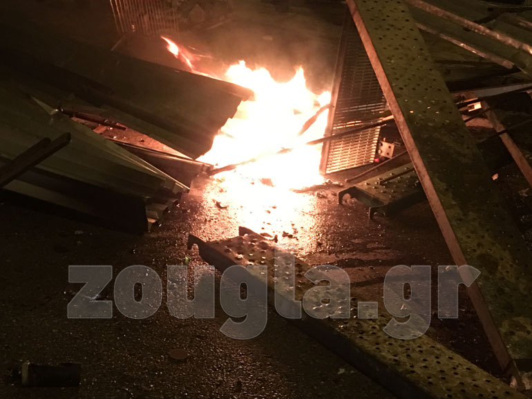 Οι κουκουλοφόροι επιτέθηκαν με βροχή από μολότοφ και πέτρες στο όχημα «Αίαντας» την ώρα που εκείνο επιχειρούσε να προσεγγίσει διαμέρισμα που απειλείτο από τις φλόγες. H δεύτερη «αύρα» κινήθηκε στην Τοσίτσα όπου γκρέμισε οδόφραγμα ύψους περίπου δύο μέτρων.