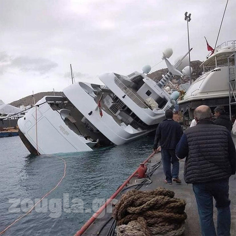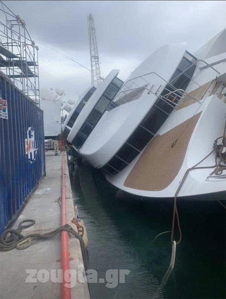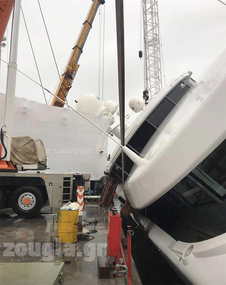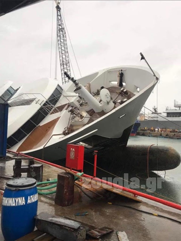 Θαλαμηγός ημιβυθίστηκε σε θαλάσσια περιοχή σε ναυπηγείο στο Πέραμα, κατά τη διάρκεια ανέλκυσής της.