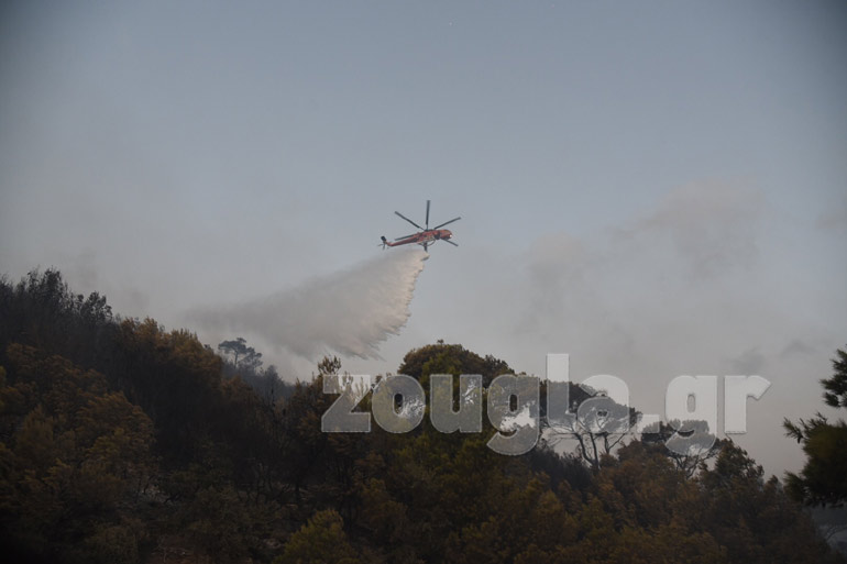 Από τις 06.30 επιχειρούν τέσσερα αεροσκάφη και πέντε ελικόπτερα. Στην προσπάθεια για την κατάσβεση της πυρκαγιάς συμμετέχουν 138 πυροσβέστες με 44 οχήματα.