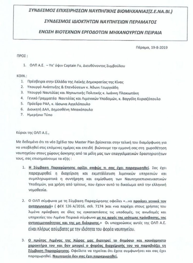Η επιστολή των φορέων που διαμαρτύρονται προς τον ΟΛΠ: