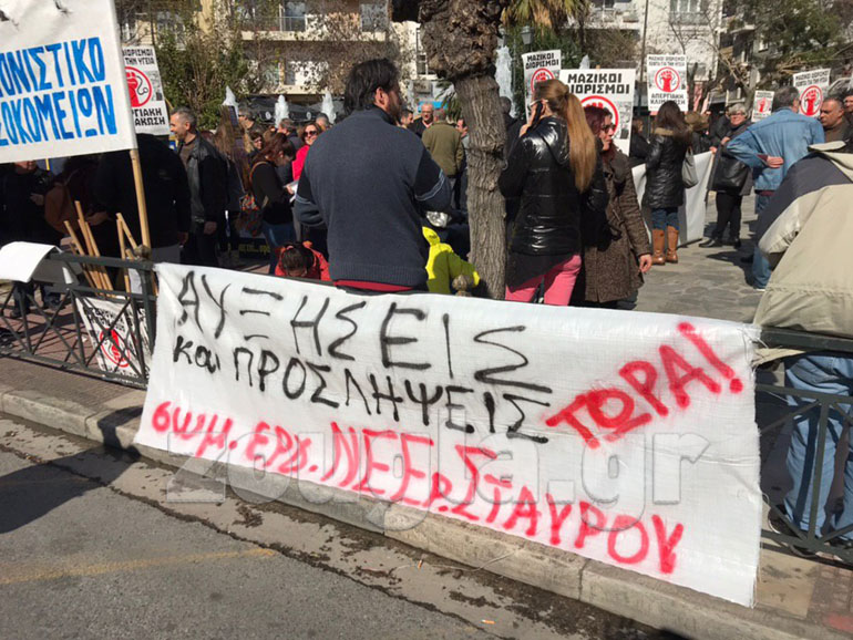Συγκέντρωση διαμαρτυρίας στην πλατεία Μαβίλη πραγματοποίησε σήμερα η Πανελλήνια Ομοσπονδία Εργαζομένων στα Δημόσια Νοσοκομεία.