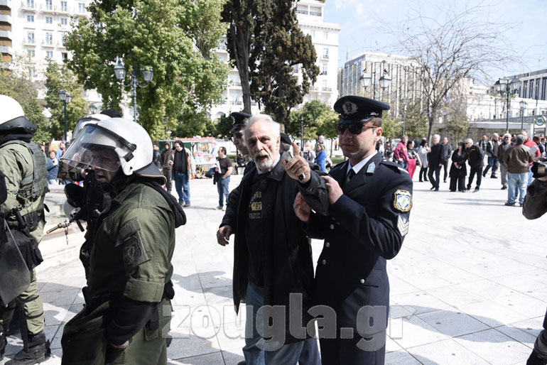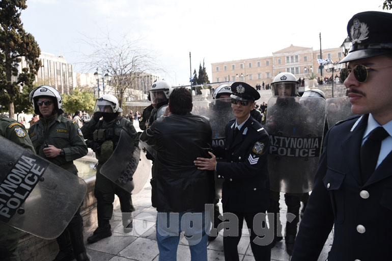 Δύο προσαγωγές πολιτών πραγματοποιήθηκαν το πρωί της Κυριακής στην πλατεία Συντάγματος λίγο πριν την έναρξη της μαθητικής παρέλασης για την Εθνική Επέτειο της 25ης Μαρτίου.