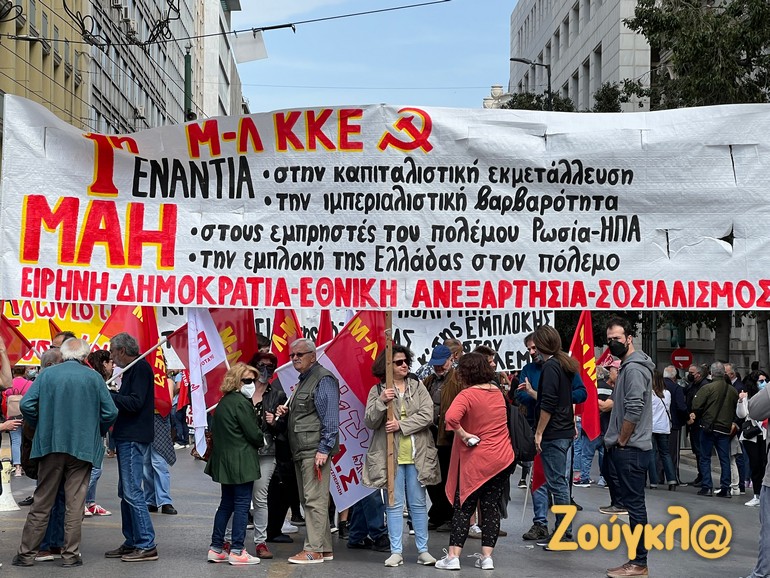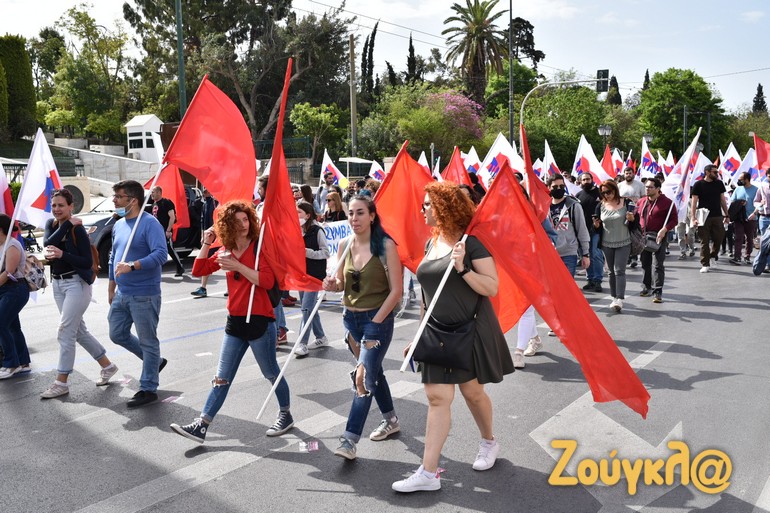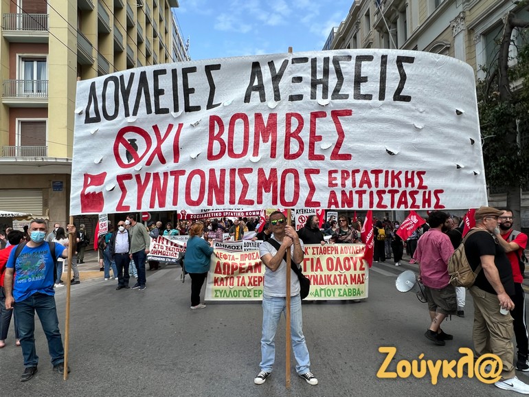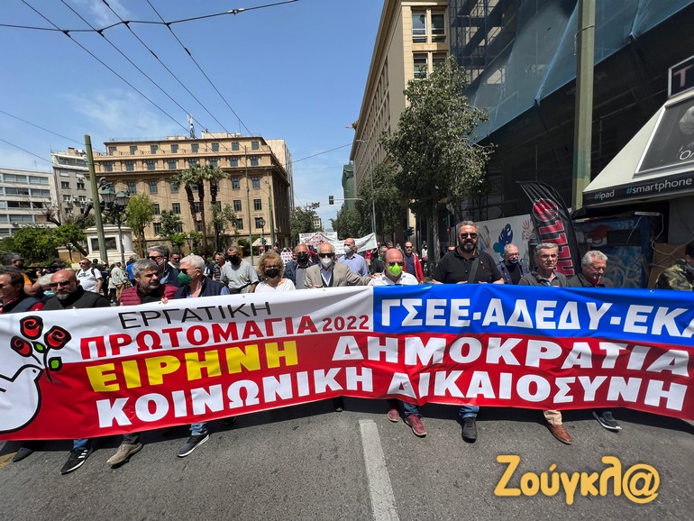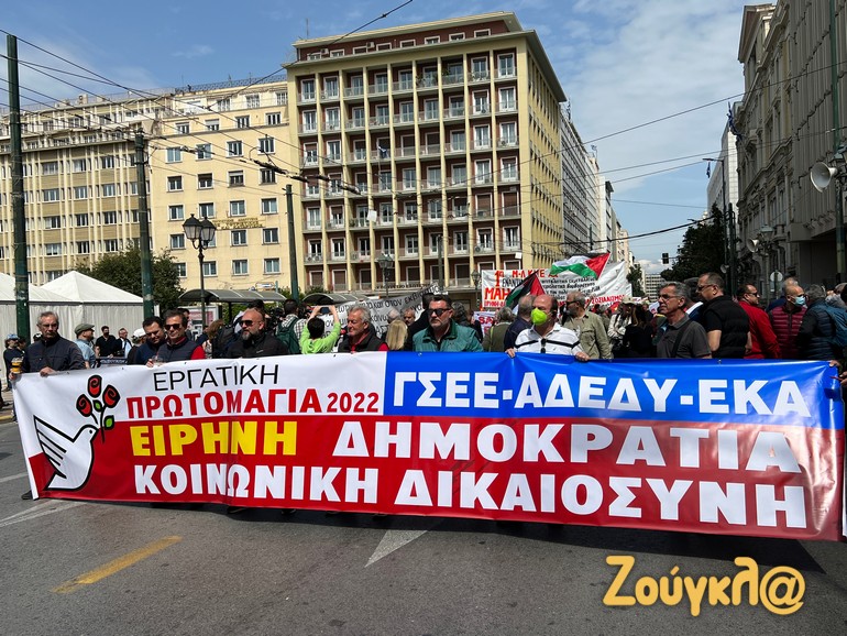 Συγκέντρωση και πορεία πραγματοποίησε και η Γενική Συνομοσπονδία Εργατών Ελλάδας (ΓΣΕΕ) στην πλατεία Κλαυθμώνος.