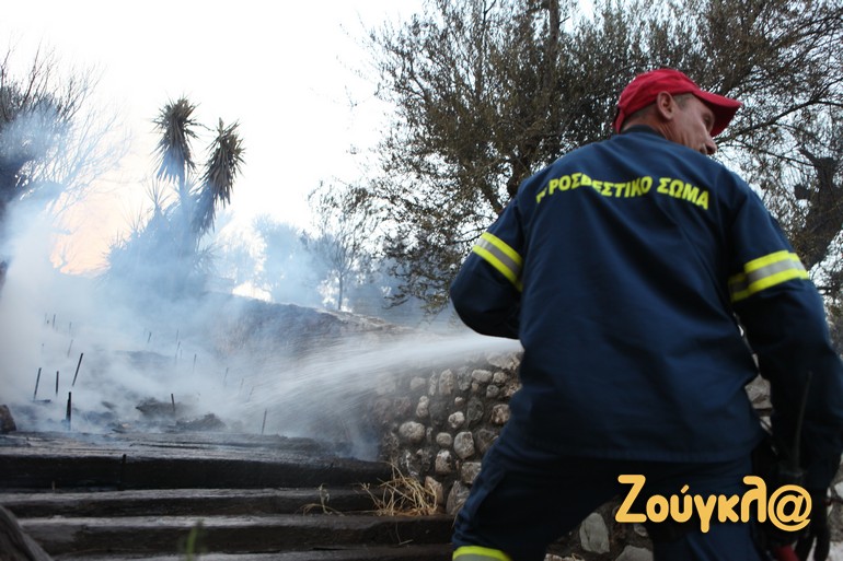Η ίδια εντολή δόθηκε και στους κατοίκους του χωριού Καμάρες, όπου υπάρχουν εγκλωβισμένοι λουόμενοι στην παραλία και οδηγοί. Λουόμενοι που παρουσιάζουν αναπνευστικά προβλήματα απομακρύνονται ήδη από με σκάφη του Λιμενικού. Πάντως, όσοι βρίσκονται στις παραλίες Μπούκα Καμαρών και Λαμπίρι ζητούν ακόμη μεγαλύτερη συνδρομή από σκάφη, καθώς, όπως λένε, μπορούν να απομακρυνθούν μόνο από τη θάλασσα. Για το λόγο αυτό, γίνονται συνεχώς περιπολίες από σκάφη του Λιμενικού αλλά και ιδιωτικά σκάφη για να παρέμβουν όποτε αυτό κριθεί απαραίτητο. Ωστόσο, λόγω των ισχυρών νότιων ανέμων είναι δύσκολο να προσεγγίσουν τις παραλίες και να απομακρύνουν πολίτες. Απομακρύνθηκαν, επίσης, 110 παιδιά από κατασκήνωση στην περιοχή της Παναγοπούλας.