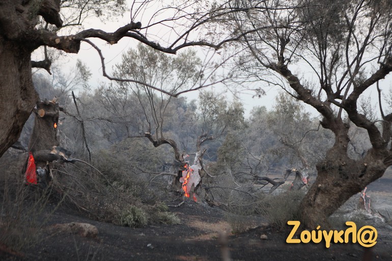 «Ζήσαμε μία πρωτόγνωρη κατάσταση, καθώς η φωτιά έκαιγε με ιδιαίτερο μένος», λέει ο πρόεδρος της κοινότητας Καμαρών, Παναγιώτης Περλέγκας, για τα όσα βίωσαν οι κάτοικοι, βλέποντας το πύρινο μέτωπο να πλησιάζει τα σπίτια τους. «Ευτυχώς όλοι έδειξαν ψυχραιμία και υπάκουσαν στις εντολές για απομάκρυνση από τα σπίτια και συγκέντρωση στο δημοτικό γήπεδο ποδοσφαίρου», συνεχίζει ο κ. Περλέγκας, προσθέτοντας ότι «υπήρχαν συνεχώς σκάφη του λιμενικού στην θαλάσσια ζώνη, ώστε να παράσχουν βοήθεια σε όποιον χρειαστεί». Ο πρόεδρος της κοινότητας συμπληρώνει ότι «η κατάσταση είναι πολύ δύσκολη. Η φωτιά έχει κάψει καλώδια από τις κολώνες ηλεκτροδότησης, με αποτέλεσμα να μην υπάρχει ηλεκτρικό ρεύμα και υδροδότηση στις δεξαμενές».