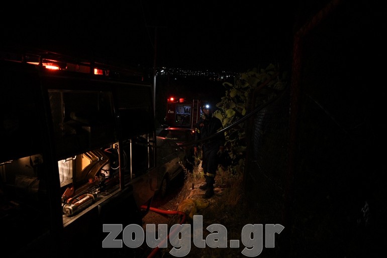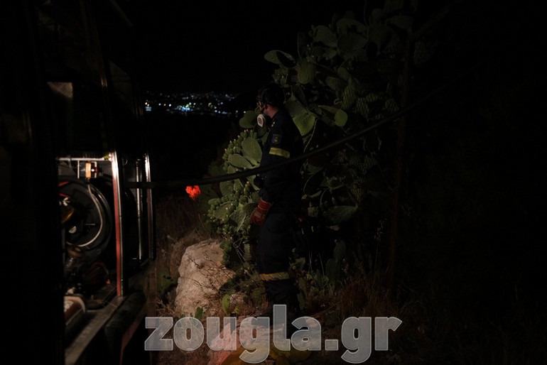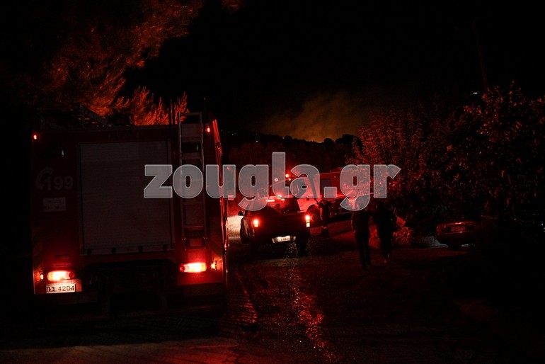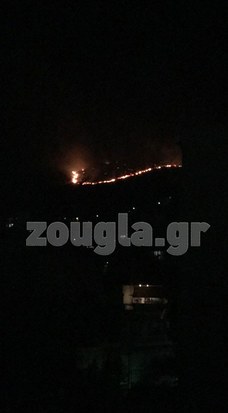 Η πυρκαγιά βρισκόταν μέχρι τα ξημερώματα της Κυριακής σε εξέλιξη στο Πέραμα στον λόφο ο οποίος βρίσκεται μετά το τέρμα της οδού Κολοκοτρώνη.